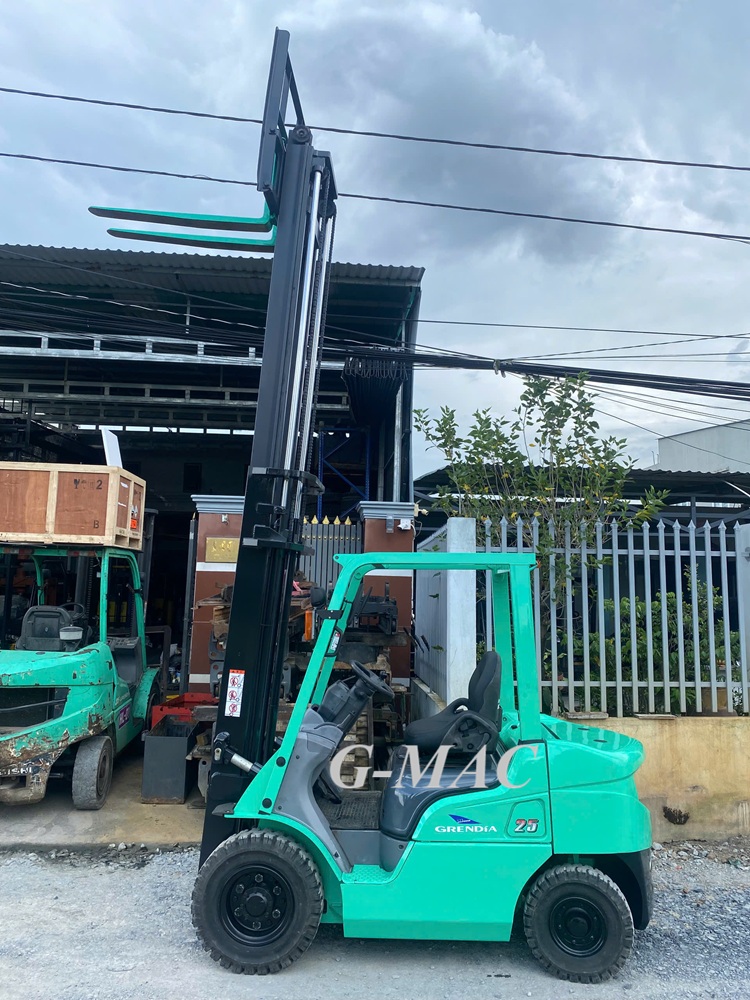 Xe nâng dầu qua sử dụng có sức nâng khỏe, hoạt động tốt ngoài trời, công trường, bãi vật liệu. Ưu điểm là bền bỉ, dễ sửa chữa, phụ tùng sẵn có.
